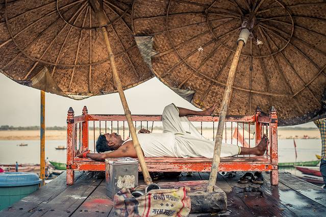 这里日夜不断焚烧着印度教徒的尸体,作为信徒能在生命终点回到恒河无疑是最好的归宿。周围灼热的空气里弥漫着尸体与木柴焚化的灰烬,我在一旁静静看着一具尸体从抬到码头到焚烧后推入恒河的整个过程,不觉之间浑身已落满尘埃。