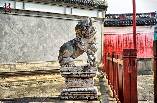 庙门两边分列着一对儿汉白玉石狮。据传这样高规格的石狮(材质为皇家最高规格:汉白玉),全中国一共只有两对。除了海神庙门口的这一对,还有一对在北京。至于在北京哪里,嘿嘿嘿。