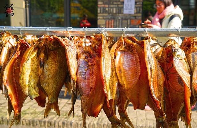 餐厅门口晾晒着的咸鱼。如果文艺是可以吃的,那么它在宽塘等你。