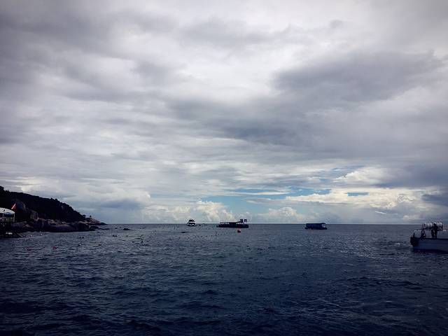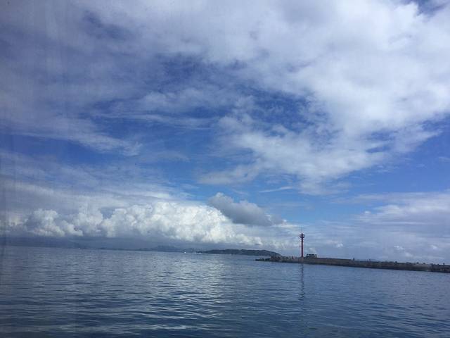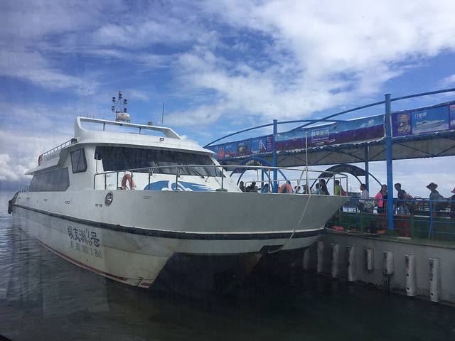 带了宝宝,我们被安排坐在了第一排,之前的半段行程还算顺利,到后来,宝宝开始有些晕船,哭闹不停,直到我们上了岛她都一直要抱着不肯坐推车。