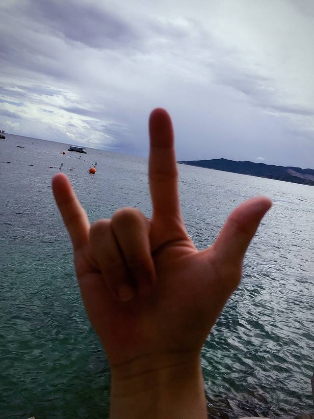 哇哎噜~是那里的地方语,意思是我爱你,当然在岛上用这个手势打招呼也是可以的