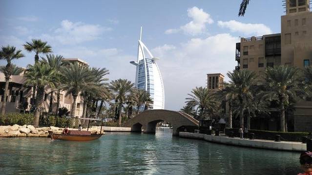 这里有蒙着头纱的女人和穿白袍戴小帽的男人,有奢侈的屋墙、冶艳的民俗工艺品和宏伟的清真寺,在枣椰树的婆娑身影中,处处洋溢着醉人的异国情调。这里有1.75英里、世界最长的蛋糕,有世界上最大的购物袋,还有耗资30亿美元、在建的世界第八大奇迹——朱美拉棕榈岛。届时,这座设计得类似大棕榈树的岛屿从月球上也可看得到