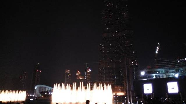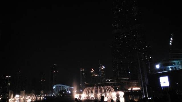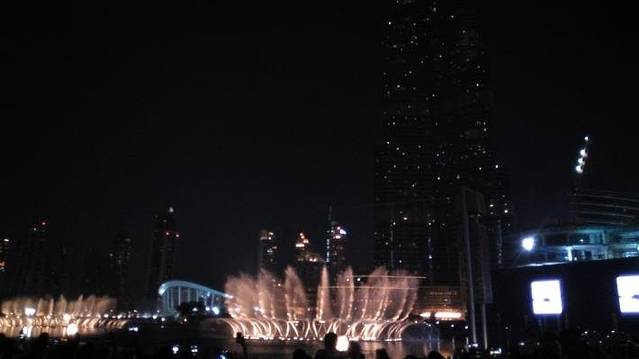 音乐喷泉表演开始,喷泉伴随着音乐而出,喷洒的水柱像是在人们面前跳着优雅的舞蹈,一会像一群苗条少女婀娜多姿、翩翩起舞;一会像一列武士整齐划一、高亢有力;一会喷出所有水柱气势磅礴、雄伟壮丽。尤其是在播放阿拉伯乐曲时,一排排打着细细的水柱,节奏时而欢快,时而缓慢。