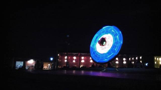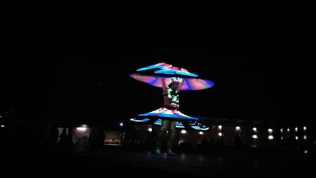 土耳其圆圈舞者身上的衣服和帽子可以发光的。只见他不停地在旋转、身上的灯光也在旋转