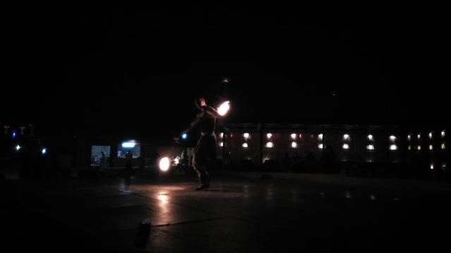 接着舞者一边旋转一边把身上的衣服拿在手上旋转、就变成一个不停旋转的光环。