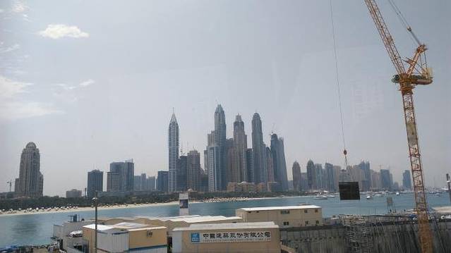 棕榈岛,坐在轻轨上,两边都是公寓或是别墅。一栋栋,一排排,都是阿拉伯特有的这种黄色,一路走过去,可以看到海水与楼群相间隔,不过只有从高空俯瞰,才能真正看出棕榈树叶的形状~~~整齐划一的别墅,感觉岛上的房子都长一个样~~~这就是棕榈的一片叶子,整个棕榈岛就是有十几片这样的叶子总成的,我们乘坐的轻轨所走的路线相当于树干。