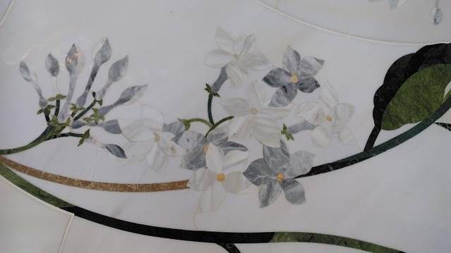 走廊上金碧辉煌的世界首创石材贝壳拼花工艺