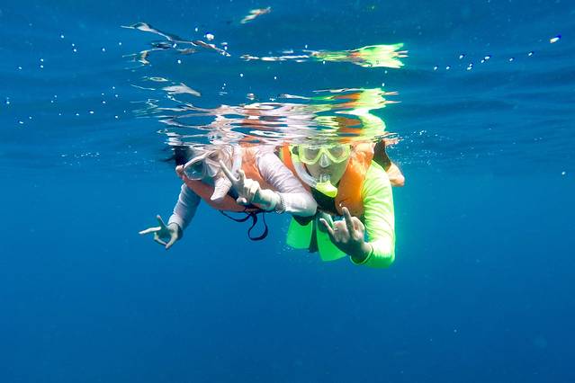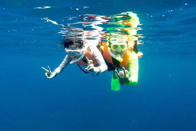 其实,除了跟着潜店的船出海潜水,还可以在酒店门口的海域任意浮潜。