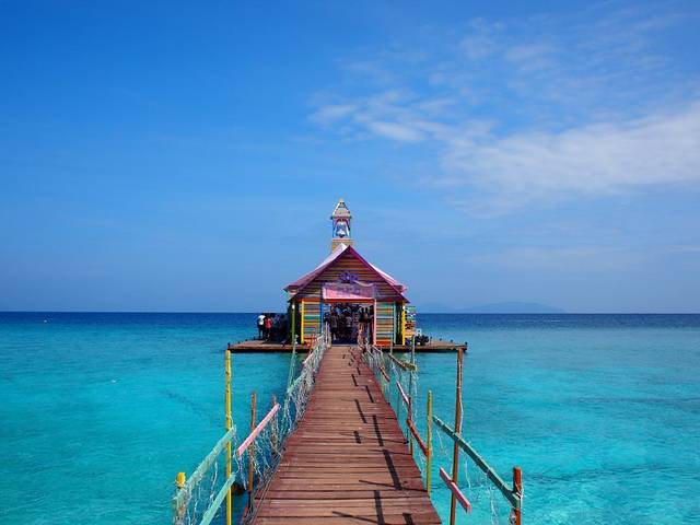 马来西亚常年都是夏天,蓝天白云常常有,夕阳西下也几乎天天见。每年10月-2月风浪会相对比较大,很多岛屿都会封岛,据强哥说,3月是全年天气最晴朗的一个月,尤其适合上岛玩,只是最容易晒伤而已。