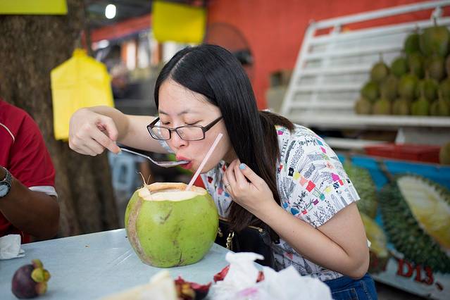 在这里,路边全是卖榴莲的,只要25马币/kg就能吃到货真价实的猫山王。至于具体的地点嘛,大家可以加微信找强哥私聊,我是真心不知道在哪里。