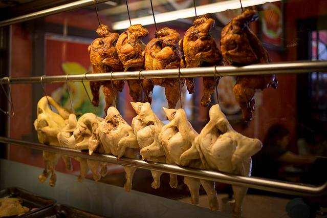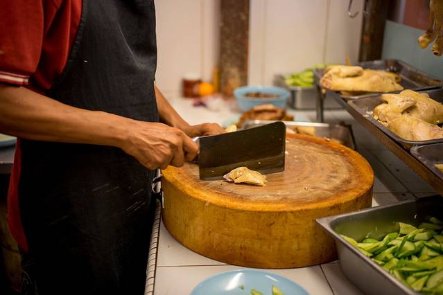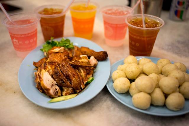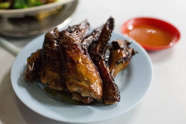 进入鸡场街,许多游客会按照网上攻略上指引的,在入口第一家小店排队购买海南鸡饭。强哥则说,何必顶着炎炎夏日在一个没有空调的地方排长队呢,没吃上就中暑了。故,我们一行人直奔大街中段的百年老店——古城鸡饭粒。