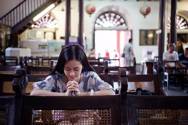 在“我爱马六甲”设计物的附近,也有一座教堂,至今仍在使用中,我们选择进去纳凉,顺便听听信徒诵经。