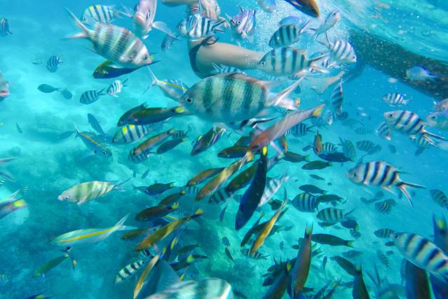 然而,鱼真的多到不需要用食物引诱,就是一大群一大群的。