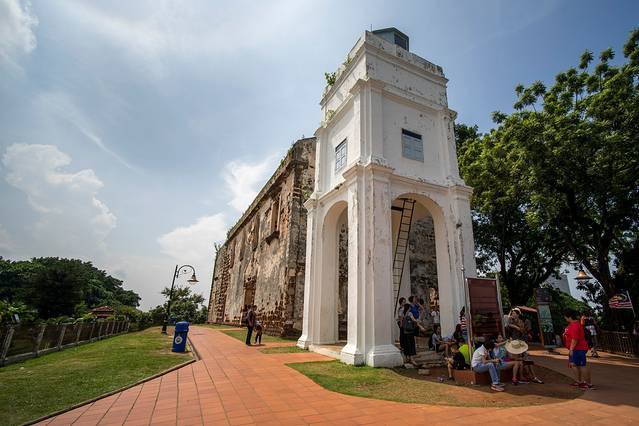 圣保罗教堂,建于1521年,为葡萄牙人所建。著名传教士圣方济各埋葬于此,教堂前竖有圣方济各神父塑像。1670年荷兰人占领马六甲后,将教堂用作城堡,今天在外墙上仍可见到不少子弹孔。 1753年,荷兰人另建了一座教堂,而圣保罗教堂则做为荷兰贵族的墓地,现在仍保留了一些刻有拉丁文和葡萄牙文的墓碑。在教堂内有一墓穴,是1553年圣方济各的临时墓地。这里还有一座圣法朗西斯的坟墓,他生前经常到访这间小教堂。1553年时,他被埋葬于此,后来,他的遗体才被移往印度的GOA 。这里竖立了一座圣法朗西斯的大理石雕像,为纪念他400多年前曾经到此居留,并作出他的贡献。