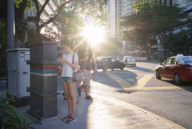 夕阳西下,金灿灿的光散落在海面上、屋檐上、道路旁,撒满了全城的每一个角落。