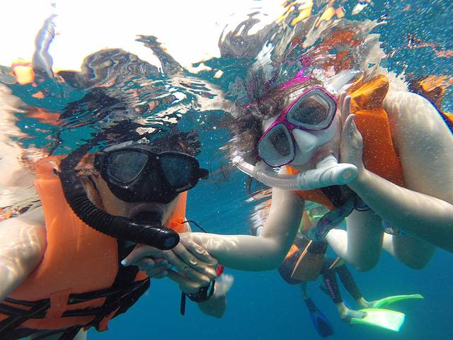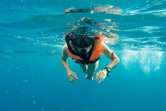 浮潜装备:自备面罩、吸管、耳塞、鼻夹、涉水鞋,脚蹼可上岛后租借。切记,一定要带大浴巾和浮潜包,非常有用。