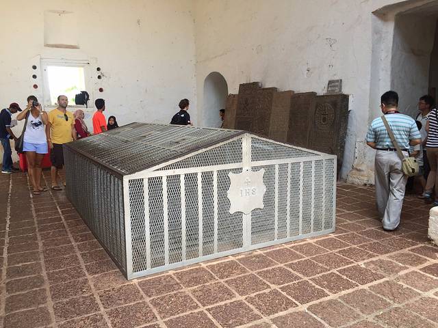 教堂的中间,有这么一个铁笼子,走进一看,是个地窖的封口,里面是古时候用来关押犯人的。