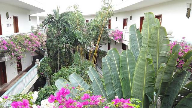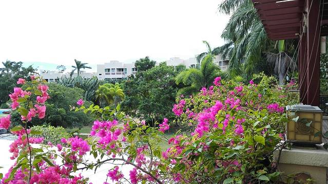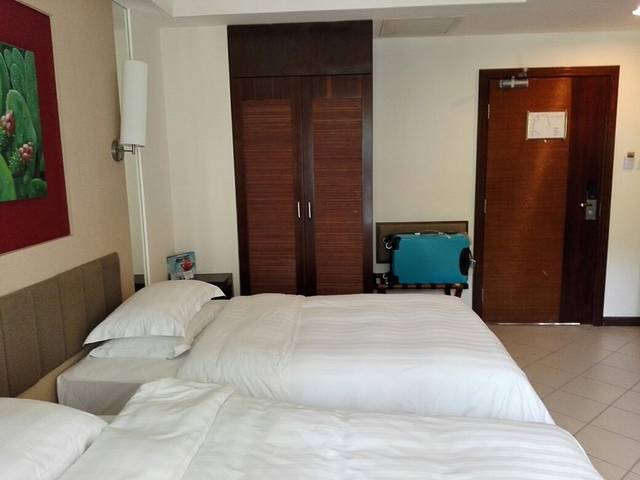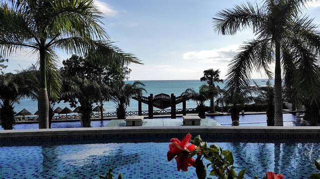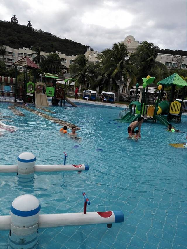 仙人掌酒店距离海滩有八百多米,是有电瓶车接送,他家的庭院游泳池非常大,适合小孩子玩!
