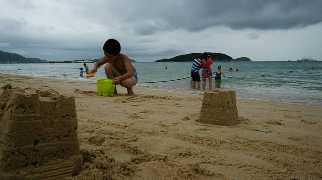 最后提醒准备前去三亚的朋友:防晒要准备好,不一定靠高档的防晒霜,防晒伞、防晒衣、一件普通长袖套在泳衣上玩沙也是有效的!