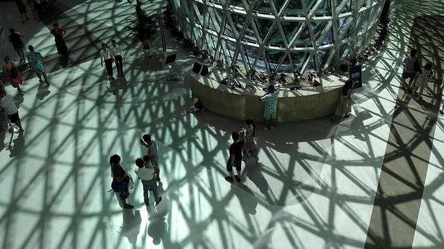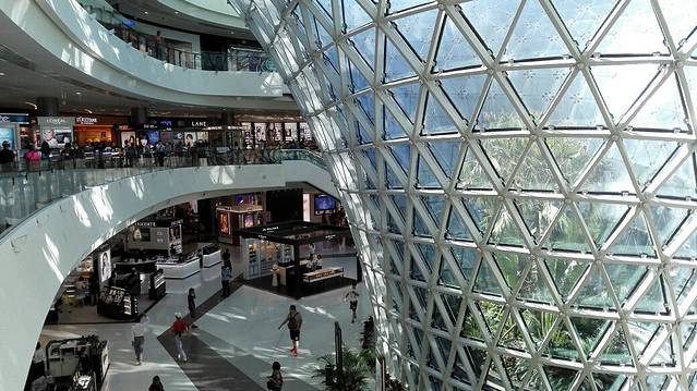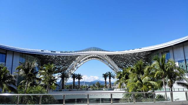 11月26日9时,我们乘坐从仙人掌酒店出发的免费大巴前往的,提前一天预约好的。在大巴上导游会介绍了免税城的特点、购物限制(要订购过离岛的飞机票才可以购买免税商品,每人限额16000元)和推荐购买的中高端商品,主要是日化护理和钟表珠宝、时尚名品。