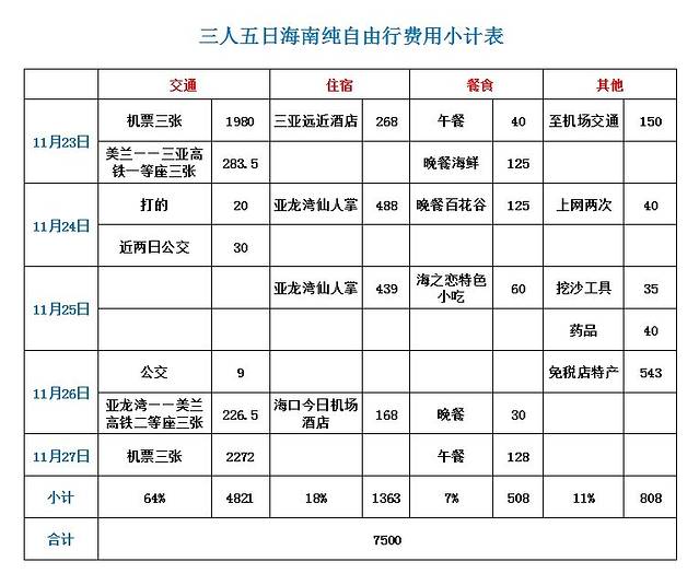 一家三口,人均费用2500,日均费用1500,因为没有玩水上娱乐项目:摩托艇、拖伞、深浅水之类,玩的话很容易每人再花一千多元。