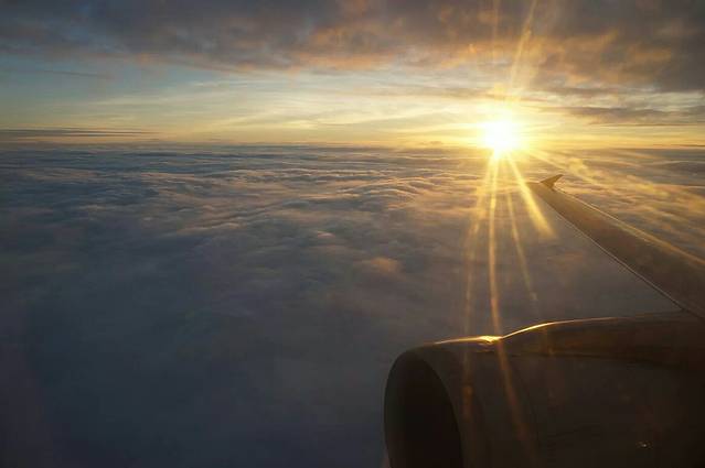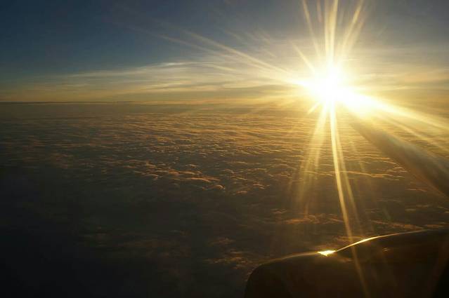 11月27日,清晨四点半起床赶到机场,6:45起飞时还下着毛毛雨,几分钟后,冲破阴霾,迎来了金碧辉煌的云海上日出!
