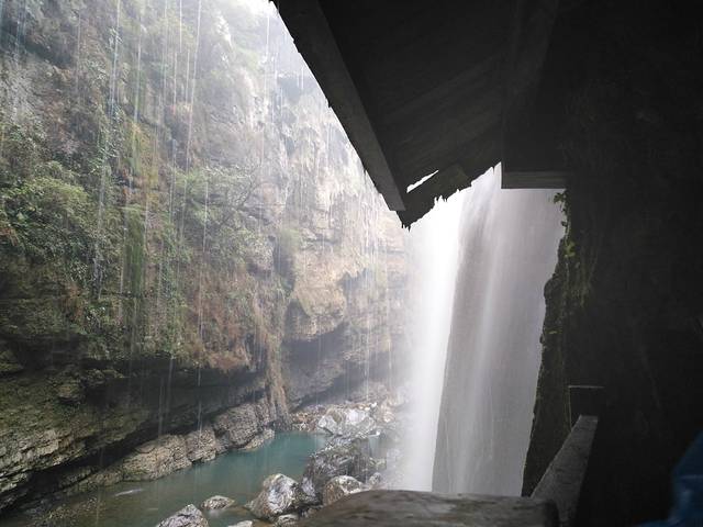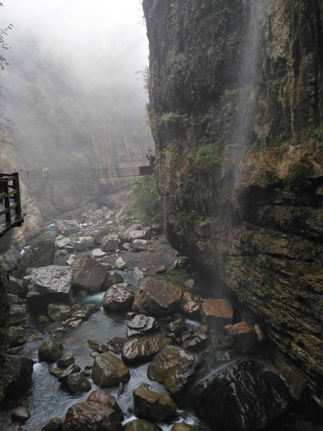3号早8点多就到了游客中心,排队坐景区车,之前看有的攻略说先玩七星寨,再玩地缝,可是事实是不让选择啊,景区的大巴直接拉到地缝了,景区的导游说景区的路线就是先玩地缝,再返回到下车处坐大巴去七星寨或走路到坐七星寨缆车位置。于是我们还是先去了地缝,去地缝时雨下的还不是很大,就是到处是台阶,上上下下,光一个地缝已经把我们累差不多了。。。