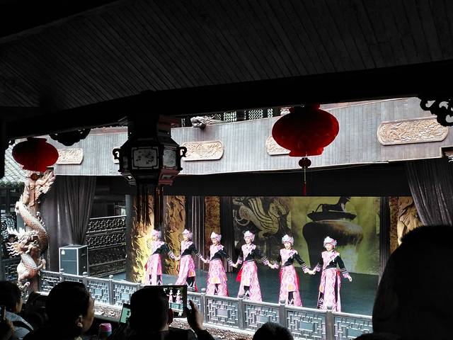 一进去,正好表演开始了,表样感觉还不错,就是商业气氛太重,看表演提供凳子,20元一位,美其名曰喝茶,就是那种小瓷碗一人一碗,感觉太不好了,跟表演中土家人的那种质朴完全反着的呀