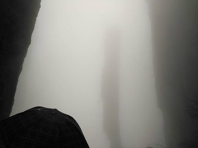 做了索道上去后,雨也开始下的大了,山上都是雾,可视度很差