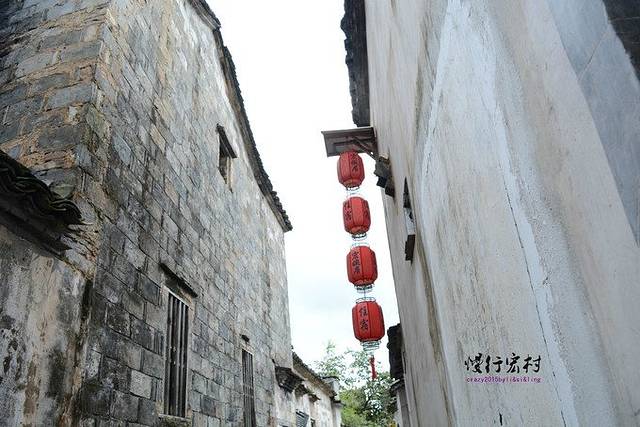 惬意的走在每家每户门口,白砖,青瓦,红灯笼,顺藤而上的苦瓜藤,扑面而来的徽州韵味。