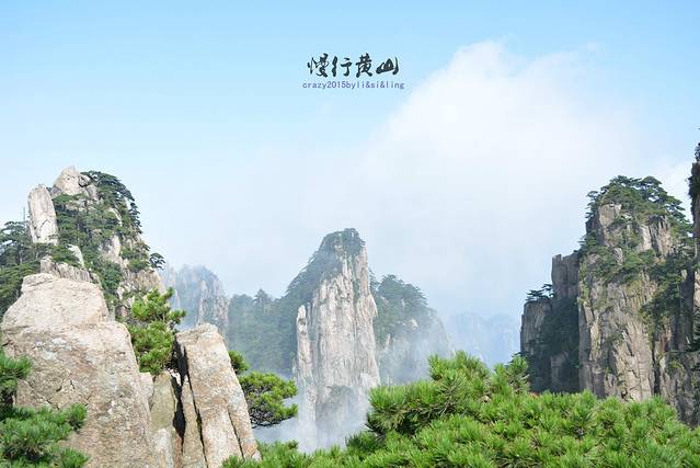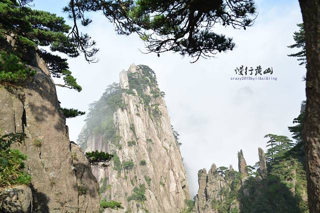 一路经过黑虎松到达竖琴松,竖琴松后面的山峰一下就被雾给掩埋,所以趁没起雾赶快记录下黄山的美。