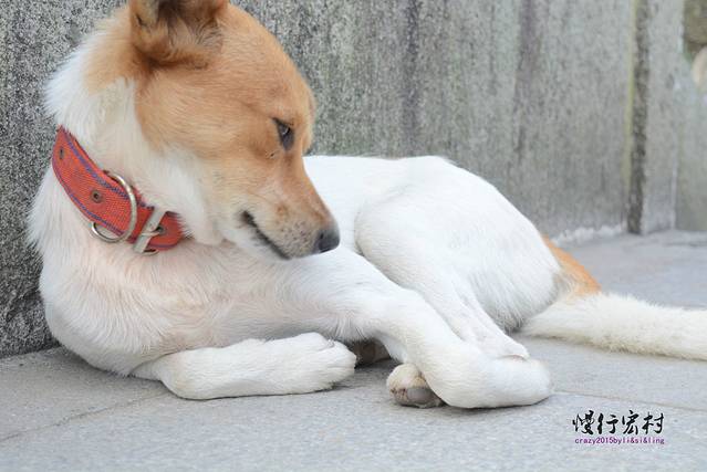 清晨的狗狗都是那么懒散,惬意的趴在桥上