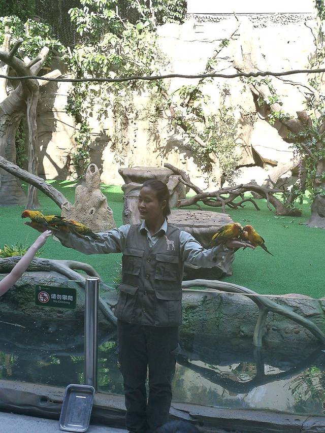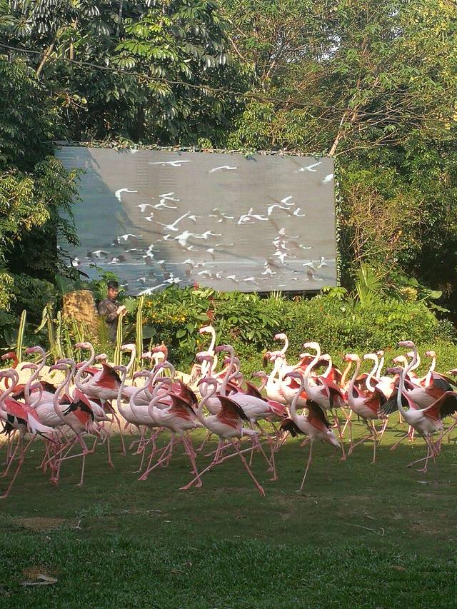 步行到达野生动物园北门乘坐长隆景区免费穿梭巴士到达长隆飞鸟乐园。飞鸟乐园安检比较严格,零食类不准带入,进检票口测体温。不过大可放心游玩区域餐饮较多还不是很贵,完全能够解决吃好问题。特别提示:此区域各种动物表演较多也比较紧凑,不用刻意追表演,间隔时间非常短就开下一场表演。飞鸟长鸣、鳄作剧、小🐷游泳比赛等等。👍👍👍