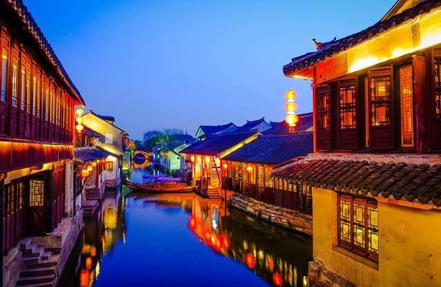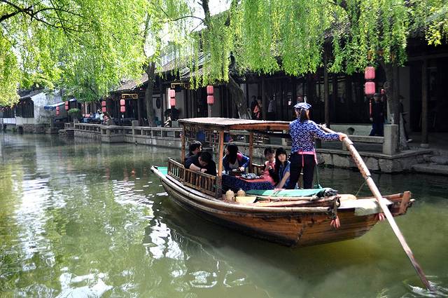 贯穿于小镇的一条条河道,是养育周庄的支支脉脉。坐船游水巷最好是在傍晚,天将黑不黑,两岸已经点起灯笼,时间大概四十分钟,一条船150元,可以找人一起拼船,最多六个人。请船娘唱民歌,需要付小费,大概二十元。