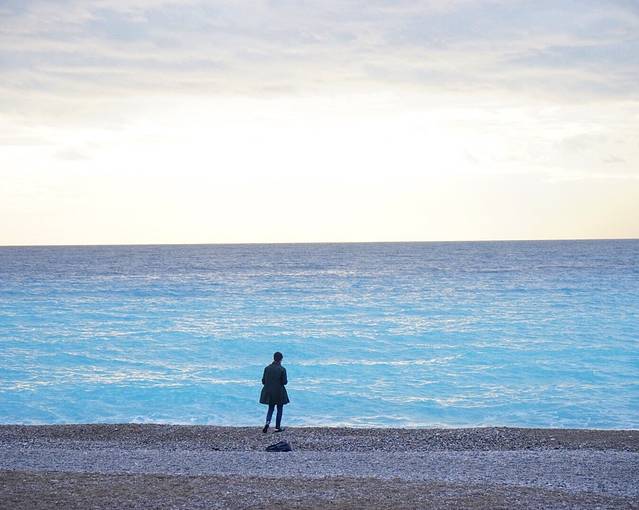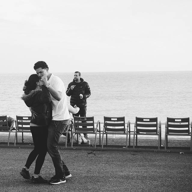 海边总有独行者,一个人看海似乎有点寂寞,给冬季的尼斯添加了一份忧郁之感。海边是观察当地人生活的好地方,有人来散步,有人来聊天,有人来跑步,有人来踢球,海承载着尼斯人的各色故事。