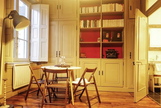 唯一的缺点就是要走陡峭的楼梯,房子在四楼,因为我在里昂的几天都是下雨天,光线极其不好,房间实际上美的多。公寓可以做饭洗衣服,也有暖气,尼斯的公寓暖气基本上没用,晚上很冷。在里昂每天晚上,我都熬到很晚才睡,躺着客厅的沙发上喝茶看电影,抬头仿佛置身在电影场景之中,无法言表的幸福。里昂的这间公寓让我联想到电影《刺猬的优雅》,优雅细致的法式风格,有些许相似。