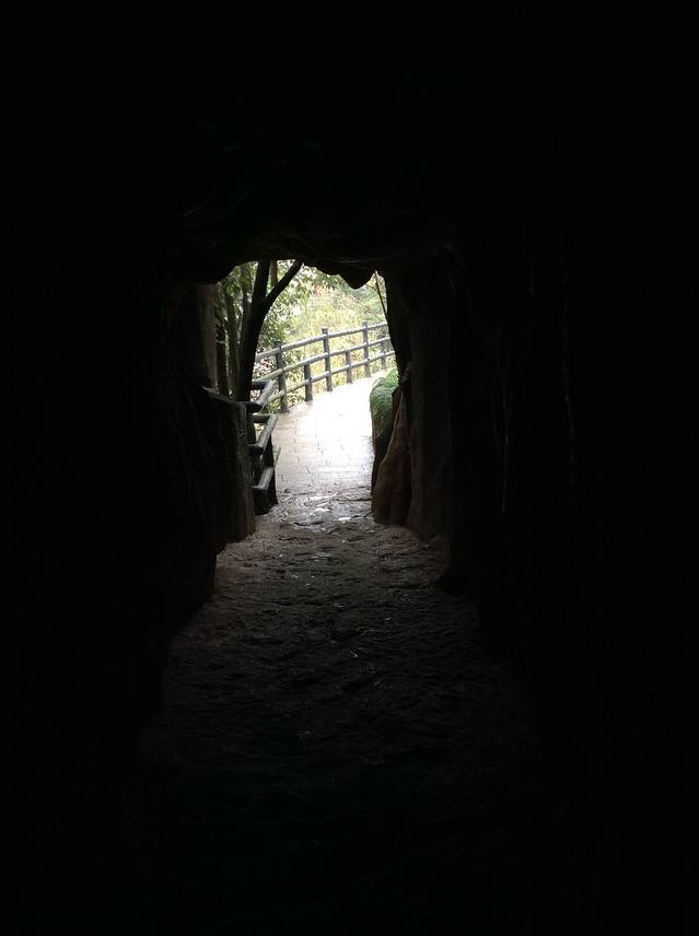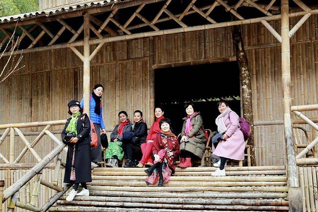 财神殿是景区下行游览线路的折返地,我们就在财神殿一旁的竹楼先歇一下脚。