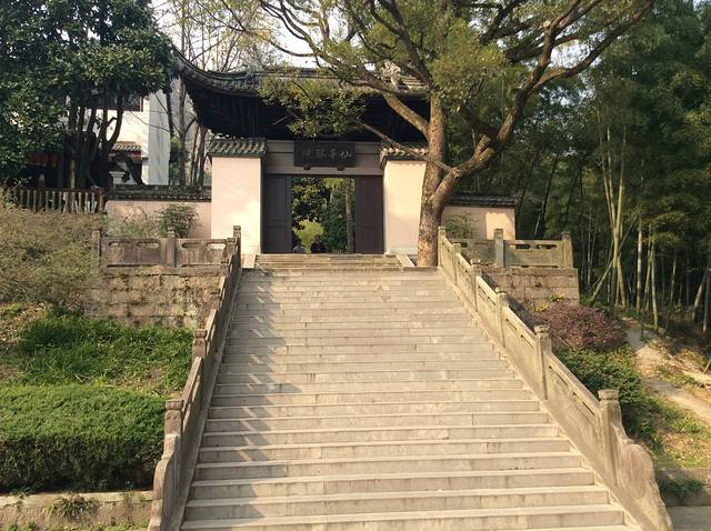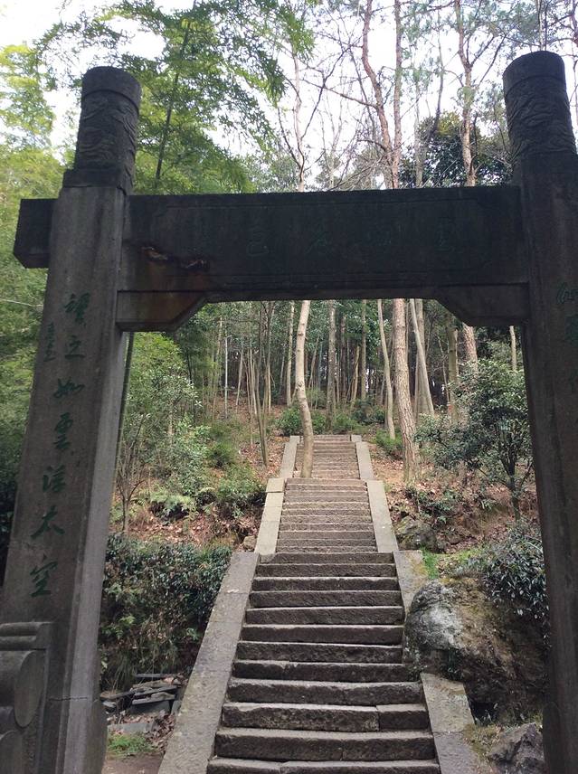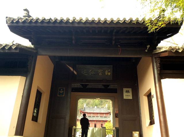 景区入口在山腰上,拾阶而上是一道山门,横挂的匾额上书有“仙华胜境”四个大字,为赵朴初所题。