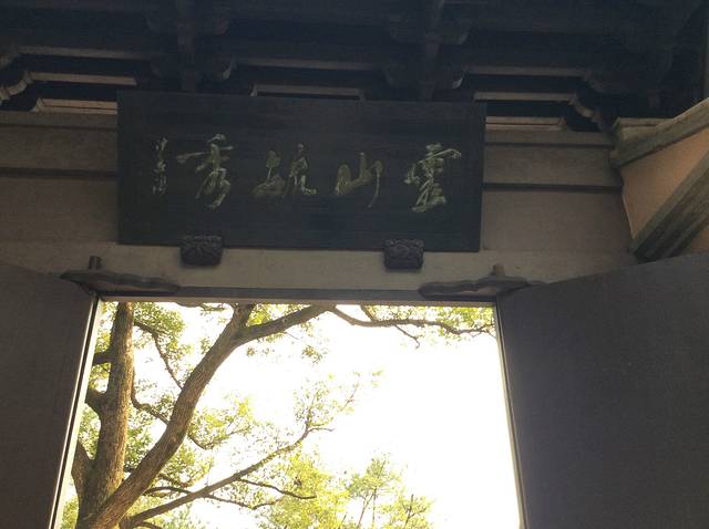 大门后另一端匾额有沙孟海书写的“灵山毓秀”四字。