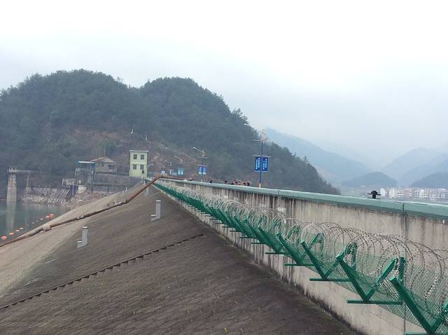 大坝垂直高度有35米,从坝底到坝顶是一段约七十米的陡坡,一条宽大的青石步道供游人拾阶而上。