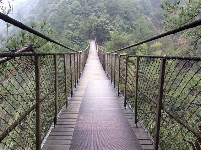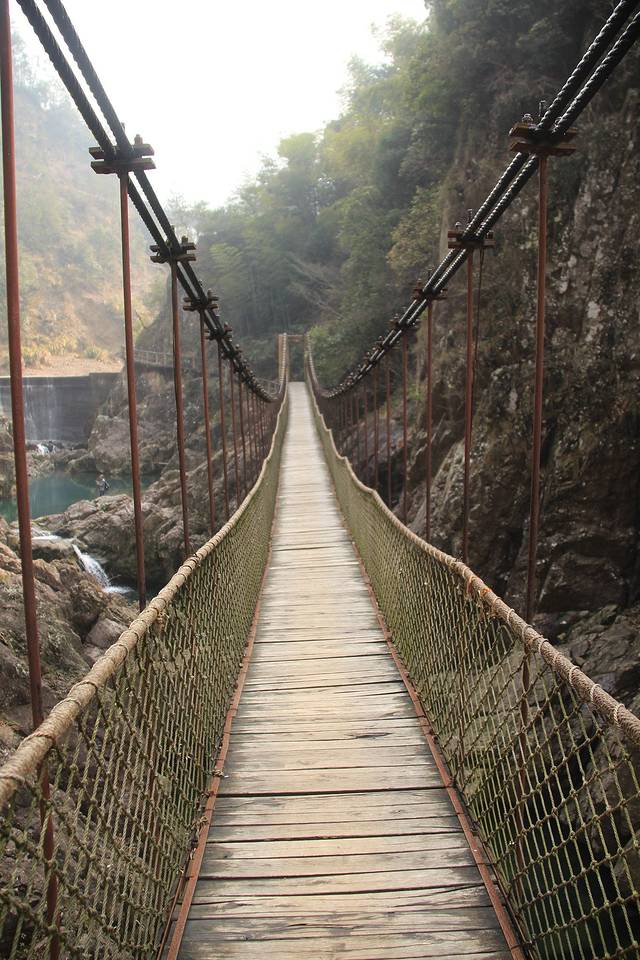 夹溪两岸之间本不相连,景区开发后除夹溪大桥外,又在峡谷上架设了三座铁索桥。