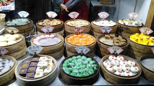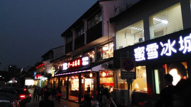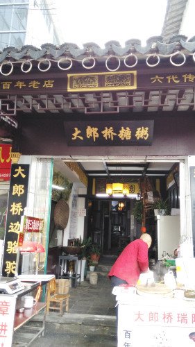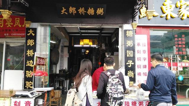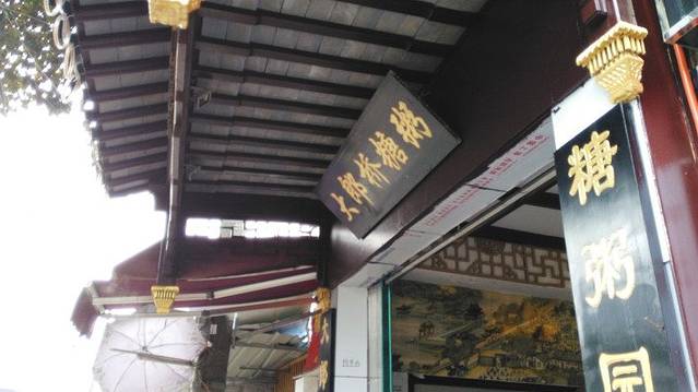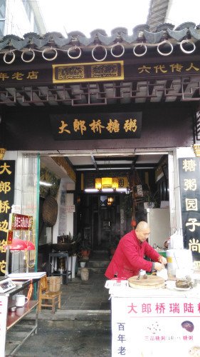 观前街 早晨一早起来,准备去吃早餐。走出旅社就见到有不少人在购买酒酿圆子。我对苏州的甜食很感兴趣,也跟在后面看个究竟。然后就点了一份十块钱的白粥、赤豆粥、酒酿圆子的糖粥。一走入老式房屋就被它里面的摆设给震惊着。