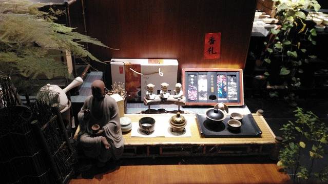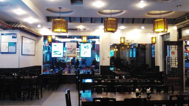 店里是中式风格的装潢,中式的八仙桌椅摆放