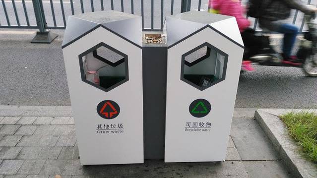 苏州的垃圾桶的造型就仿照了苏州博物馆的建筑外形