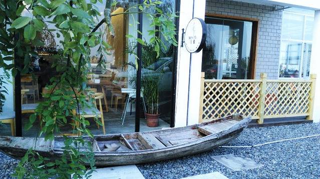 不大的房前铺设有沙石,设计成河岸停泊着一扁舟,一面巨大的玻璃落地窗,隐隐约约可以看到大厅的摆设。想象一下当午后的阳光撒入到窗中的桌椅上,而你又在这样安静、舒适的环境中品着咖啡,看一本一直想读的好书,如果看累了,还可以抬头望望对面的太湖,这样的意境今天下午就可以实现,