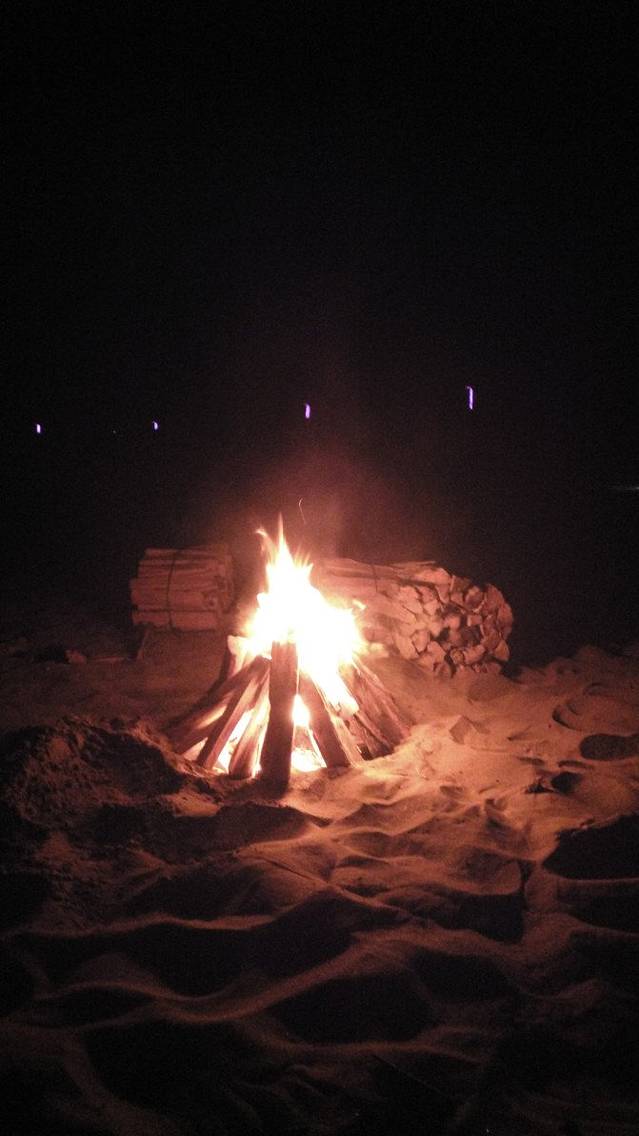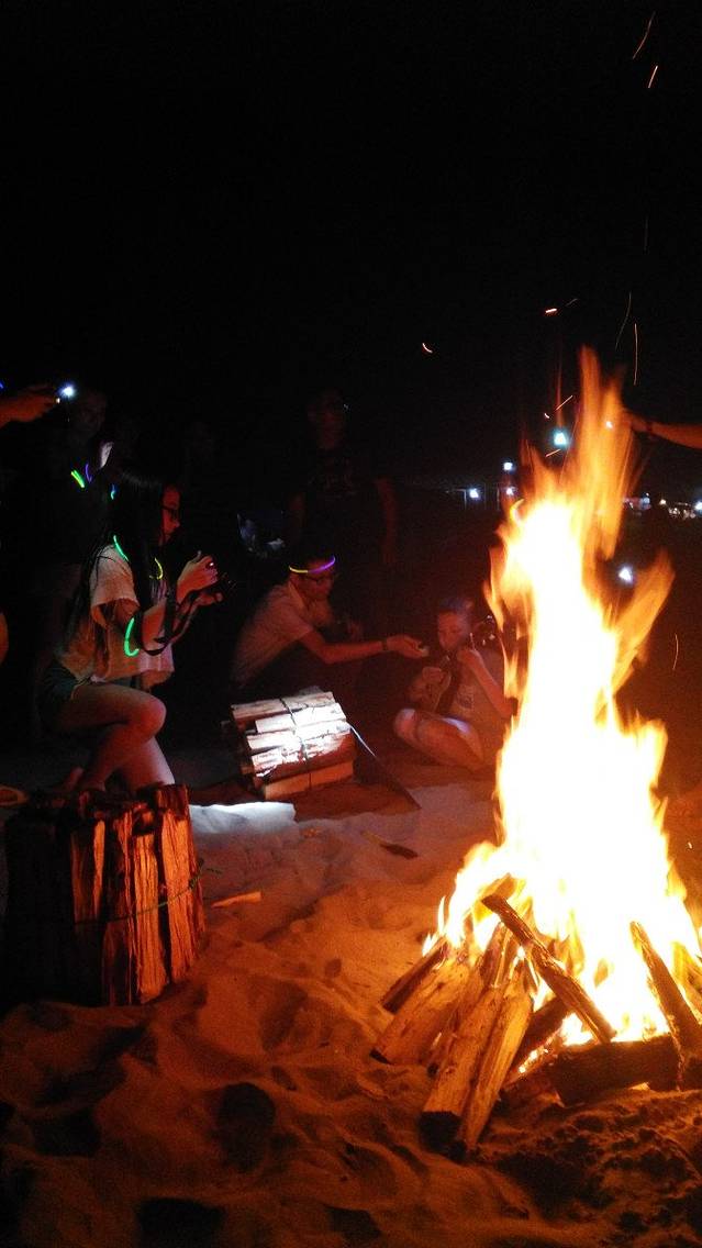 晚上领队让村民挑着劈好的木材,到达沙滩上,夜里最热闹的篝火晚会就这样开始了