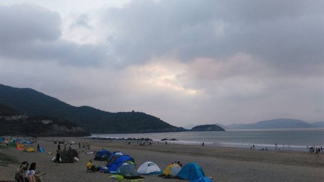 八月的一天我们到达杭州黄龙大排档的集合点,领队早早就等待在大巴车旁,因为这次去露营,可以自己带上帐篷和睡袋,我是租用了俱乐部的帐篷、防潮垫费用为六十块,这样就不用自己带到到沙滩上了,到时候用好帐篷和防潮垫完璧归赵就行,比较省心省力。