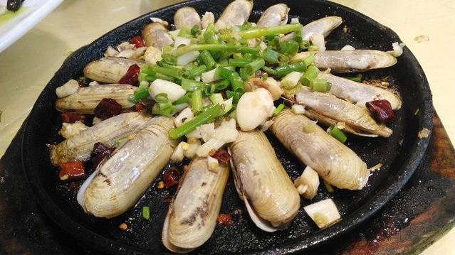 铁板蛏子,蛏子没有沙泥,比较肥和新鲜