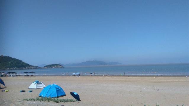 远远望去可以看到一片被山峦包围着的沙滩,蓝天碧海,还是难得的一片避暑胜地。