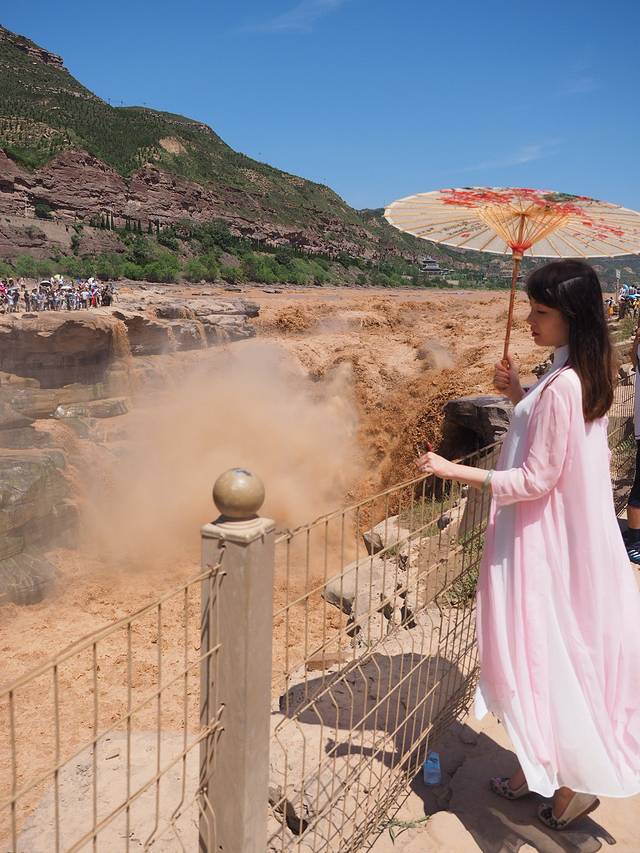 整个壶口景区比较单调,就是景区环保车到了,走下去就是看壶口瀑布,除此之外就是看壶口瀑布对面陕西面的人了。人绝对是多的,而且景区全是黄土枯石,连棵树都没有,不撑把伞人都要给晒晕过去了。